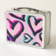 This is a standard metal lunchbox that appears to work just fine. We designed this box ourselves with an uploaded photo and custom text on the front and back. It looks absolutely beautiful except the front of the lunchbox is not centered like it shows in the photo. The print borders don't align with the inset flat part of the box where the preview photo online showed it perfectly centered in there. The back looks nice and centered though.
