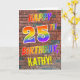 The front of this fun, exciting and eye-catching birthday-themed greeting card design features the message "HAPPY 25TH BIRTHDAY" with letters having a multicolored rainbow like gradient pattern, and a editable name colored yellow, on a brick wall pattern background. The appearance is inspired by that of graffiti or street art drawn on wall. The inside features a birthday greeting message that can be customized. A fun, happy, customizable birthday greeting card like this might be a special way to commemorate somebody’s 25th birthday. [~Z0000357]