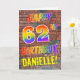The front of this vibrant, eye-catching and fun birthday-themed greeting card design features the message "HAPPY 62ND BIRTHDAY" with letters having a multicolored rainbow like gradient pattern, and a personalised name coloured yellow, on a brick wall pattern background. The look is inspired by that of graffiti or street art drawn on wall. The inside features a customised birthday greeting message. A happy, fun, customisable birthday greeting card like this might be a special way to celebrate somebody’s 62nd birthday. [~Z0000357]