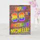 The front of this fun, eye-catching and exciting birthday-themed greeting card design features the message "HAPPY 88TH BIRTHDAY" with letters having a multicolored rainbow like gradient pattern, and a personalized name colored yellow, on a brick wall pattern background. The style is inspired by that of graffiti or street art drawn on wall. The inside features a birthday greeting message that can be customized. A happy, fun, customizable birthday greeting card like this might be a special way to commemorate somebody’s 88th birthday. [~Z0000357]