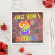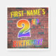 The front of this fun, exciting and eye-catching birthday-themed paper napkin design features a custom name, and the message "2ND BIRTHDAY!" with letters having a multicolored rainbow spectrum inspired gradient pattern, on a brick wall inspired pattern background. The style is inspired by that of graffiti or street art drawn on a wall. Fun paper napkins like this might be used at a birthday party being held to commemorate somebody’s 2nd birthday. [~Z0000367]