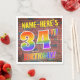 The front of this vibrant, exciting and fun birthday-themed paper napkin design features a customisable name, and the message "34TH BIRTHDAY!" with letters having a multicolored rainbow spectrum inspired gradient pattern, on a brick wall inspired pattern background. The style is inspired by that of graffiti or street art drawn on a wall. Fun paper napkins like this might be used at a birthday party for somebody who is celebrating their thirty fourth birthday. [~Z0000367]