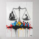 This striking graffiti-style artwork highlights the imbalance of wealth and opportunity through a symbolic scale, where a businessman outweighs a child on the opposite side. Beneath the scales, vibrant splashes of red, blue, yellow, and black represent the voices of the people calling for change. Inspired by urban street art and protest movements, this piece offers a powerful commentary on inequality and injustice. Perfect for those who appreciate bold, socially conscious art.