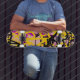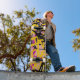 Retro style 80s graffiti scribbles artwork onto skateboards.