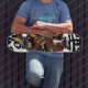 Retro style 80s graffiti scribbles graphics onto skateboards.