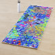 This digital graffiti has all the vivid colours of salt water fish. Multiple shades of blue are mixed with yellow, orange, purple, lime green, pink, aqua, black. The various textures and opacities give the design depth. This eye-catching graffiti yoga mat is sure to appeal to lovers of colour.