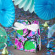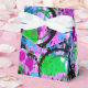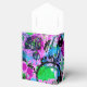 These colourful favour boxes flaunt a lively abstract in shades of turquoise, pink, purple, lavender,periwinkle, green, black and white.