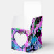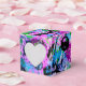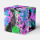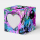 These colourful favour boxes flaunt a lively abstract in shades of turquoise, pink, purple, lavender,periwinkle, green, black and white.
