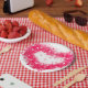 Graffiti spray paint pink sparkling heart design paper plate