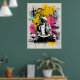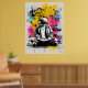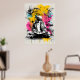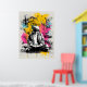 Graffiti-inspired street art poster of a boy reading, with stencil details and bright splashes of yellow, pink, and blue. A powerful urban design for modern home decor, classrooms, or gifts for graffiti and street culture fans.