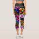 Graffiti Style Flowers & Ladybug Pink Purple Red Capri Leggings