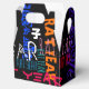 Designed for 8 letters : RAT YEAR (7 + space) with year and Chinese ideogram of the Rat. Design on gable favour box with black background. You can easily change background colour and text (colour, font, size and position) by clicking the personalise or customise button. Available in other styles: tent, cube, take out. Joy and unconventional greeting for Chinese New Year of the Rat 2020 or birthday (people born in Rat Year).