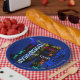 Designed for 10 letters : TIGER YEAR (9 + space) with year and large black Chinese ideogram of the Tiger as background + blue gradient tiger silhouette. Design on party paper plate with dark blue background. You can easily change text (colour, font, size and position) and background colour by clicking the personalise or customise button. Matching leggings and more in other colours... Joy and unconventional greeting for Chinese New Year of the Tiger 2022 or Birthday (people born in Tiger Year).