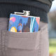 Well made flask, a little better than I had expected. Flask came in clear plastic box which gave it a nice presentation when I took it out of the zazzle packaging. Image is not printed on flask but on sticker. Don't know how this will hold up I haven't used it yet. This would make a Great gift! I plan to purchase more for friends! Cheers. I thought a little brighter than computer. Very crisp, writing wasn't