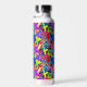 The bottle looks even better in real life. The ice cubes I put in lasts all day! I have my bottle with me all the time. It's summer and having something cold to drink feels amazing. With this bottle I always have something super cold. I have only tried the hot drink once and it lasted a long time as well. The color blue is a navy blue and the white printed on it is vibrant. It printed perfectly. I love my personalized smile water bottle.