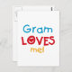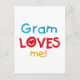 Gram Loves Me T-shirts, cards, stickers, bodysuits bags, and more with colourful red, yellow, and blue text and heart design. These Gram Loves me apparel and gift items will make gram smile!