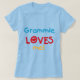 Grammie Loves Me T-shirts, cards, stickers, bodysuits bags, and more with colourful red, yellow, and blue text and heart design. These Grammie Loves me apparel and gift items will make grammie smile!
