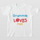 Grammie Loves Me T-shirts, cards, stickers, bodysuits bags, and more with colourful red, yellow, and blue text and heart design. These Grammie Loves me apparel and gift items will make grammie smile!