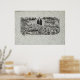 Reproduction of a picture of Josee Guadalupe Posada (1852-1913). The drawing is described as "Print shows large skeleton hypnotising a group of skulls and a sitting skeleton; an electric street car, with skeletons as passengers, is in the background."