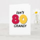 Black, red, and yellow text design for the 80th birthday that reads "Isn't 80 Grand!".