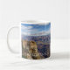 Classic white 11 oz. mug with an image, on both sides, of a view of the Grand Canyon, a steep-sided canyon carved by the Colorado River, far below, in the state of Arizona in the United States. The canyon is contained within and managed by Grand Canyon National Park, the Hualapai Tribal Nation, the Havasupai Tribe, and the Navajo Nation. The Grand Canyon is 277 miles (446 km) long, up to 18 miles (29 km) wide and attains a depth of over a mile (6,000 feet or 1,800 metres). See matching candy jar, paper plate, square ceramic tile and coasters. See the entire Arizona Mug collection in the HOME section.