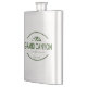 The product is a good size and came exactly as it was pictured. The lid is not attached to the flask, which could be dangerous on drunken nights... The print came out surprisingly well and looks very sharp. Would definitely recommend.