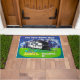 This doormat features a travel trailer similar to a Grand Design XLS 17MKE. It shows a trailer with mountains in the background and hooked up to all the modern conveniences. You can customise it by putting you name at the top. It shows you are really "roughin' it". Makes a great gift for yourself or those friends or family members who are really into camping!