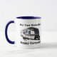This coffee mug is available in a variety of colours and you can change the name on the top to personalise it. It has a travel trailer design similar to a Grand Design XLS 22MLE trailer and the words "happy campers" on the bottom. It holds 11oz and has a large handle to make it easy to hold even when full.
