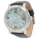 Charts are art as much as they are information. This watch captures the majestic Grand Lake. Tucked away in the Rocky Mountains at that is tucked away up in the Rocky Mountains at more than 8,000 feet in elevation the lake is home to the highest registered yacht club. This watch celebrates the club and the lake. Latitude and longitude scales that are typically seen on the border of a chart have been redesigned to mark minutes (1 black and white rectangle = 1 minute).