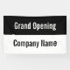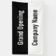 A grand opening banner lets the world know your new business has opened its doors to the public. This Grand Opening banner has a black stripe at the top. White display text is on the black stripe. The bottom stripe is white and has black text for the company name. All text can be edited or deleted.
