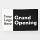 You can showcase the grand opening of your business with this black and white banner. A display image is on one side. You can replace the image with your company logo. The other side is black with white display text. You can edit the text as needed (shown: Grand Opening).