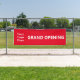 This grand opening banner is bright red. This outdoor business banner has white text in all caps. A placeholder image is next to the the text. You can replace the image with your company logo. An outdoor banner is a simple and affordable way to market the opening of your new business. You can change the message on the banner if desired.