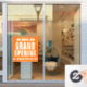 Retail sale signage window cling banner, inform customers of your opening and help welcome customers in with this grand opening banner in orange and white. Background colour can be changed to suit your business colours. Ideal to generate foot traffic into your new business and alert customers you are open. Customise with your own business name and message details.