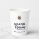 Elevate your grand opening celebration with our Grand Opening Event Paper Cups. These cups feature a brushed gold seal logo at the top, 'Grand Opening' in bold navy blue script, your company name in classic typography, and the event date in modern, elegant font. Use these paper cups to brand your beverages and provide a memorable touch to your event.