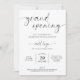 Create custom business launch event invites for your brand with this minimalist Grand Opening Invitation. This professional black and white company flyer is perfect to use for the launch party of your new boutique, salon or shop. You can add your logo and grand opening event details as well as your company details and create personalised invites for your business. The trendy script font and minimal layout makes this Business Opening Party announcement super versatile and can suit any brand.