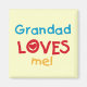 Grandad Loves Me T-shirts, cards, stickers, bodysuits bags, and more with colourful red, yellow, and blue text and heart design. These Grandad Loves me apparel and gift items will make grandad smile!