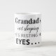 Great gift for Grandad's everywhere. A jumbo sized mug, with fun text reading, "Grandad's not sleeping he's resting his eyes..." Even Grandad's need a nap!
