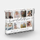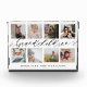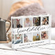 Send a beautiful personalised gift to your grandparents that they'll cherish forever. Special personalised grandchildren photo collage plaque to display your own special family photos and memories. Our design features a simple 8 photo collage grid design with "Grandchildren" designed in a beautiful handwritten black script style and "make life the grandest" displayed below. Each photo is framed with a simple offset gold coloured border. Customise with grandchildren's names.