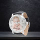 A gift or keepsake of a newborn baby, grandfathers, grandpa's first granddaughter. Template for your own photo. Black letters and the text: 1st Granddaughter. Hand lettered style script. Black clock numbers from 8 to 4.
