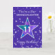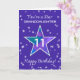 Celebrate your growing granddaughter on her 11th birthday with a card as bright and lively as she is! A big, dazzling star in rich watercolor shades of blue, purple, green, and pink is framed by a soft periwinkle sky and dancing textured stars. A sweet and upbeat design to let her know how much she sparkles in your world.