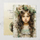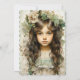 The most beautiful dark haired girl, wearing a green with flowers in her hair, to give to your granddaughter for a Christmas card.