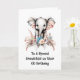 An adorable AI graphic featuring watercolor giraffes sitting on their haunches; zebras wearing large brimmed floral hats and an elephant set against a white background that has templates for your custom wording. The current message reads "to a special grandchild on their 00 birthday"; "dream big little one, you are much loved. Happy birthday!". These are ideal for your grandson or grandaughter or for any child celebrating their birthday.