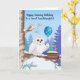 This charming January birthday card showcases a beautiful Snowy Owl holding a snowflake balloon while sitting beside a rich chocolate birthday cake. In the background, a small Barn Owl watches from a snowy winter scene, adding a touch of nature and seasonal magic. Perfect for anyone with a January birthday who loves owls, wildlife, and cozy winter themes, this unique nature-inspired birthday card brings charm, warmth, and winter wonder to their special day.