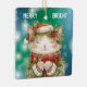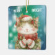 Here's a pretty Christmas ornament for that special granddaughter, daughter, or niece! On the front an adorable kitty cat is dressed in a red pattern hat, scarf, and mittens. The cat holds sprigs of holly with red berries. A green and blue bokeh background holds white text that says "MERRY BRIGHT". The back of the ornament has the same bokeh background with your custom text. It's personalised for her, and easily adapted for a gift from anyone; just change the text.