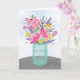 Celebrate with your Granddaughter on Mother's Day with this pretty mason jar vase of flowers. Sitting on a table with a brown subtle blue striped table cloth. Watercolor looking flowers are soft and cheery for Mother's Day to your granddaughter!