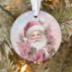Here's a pretty Christmas ornament for that special granddaughter, daughter, or niece! A classic image of Santa Claus is dressed in pink, and peeking out of a bouquet of pink roses. The image is placed on a pink and lavender bokeh background. The back of the ornament has the same bokeh background with your custom text. It's personalised for her, and easily adapted for a gift from anyone; just change the text.