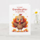 A sweet and cheerful Thanksgiving design for a special granddaughter, featuring a cute cartoon turkey with candy corn and colourful autumn leaves. The playful design pairs perfectly with the warm sentiment inside, expressing gratitude and love for a granddaughter who makes life brighter. A fun and heartfelt way to celebrate the holiday with a special girl.