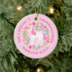 This personalised granddaughter unicorn ornament features a cute whimsical unicorn design with pretty flowers. Personalise the text on the front and the back.