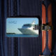 Gliding gracefully through the beautiful blue sea water, under a clear blue sky, the bow of the Grandeur enters the ship channel for a call to Port Canaveral. Your three initial monogram on the front; your name and phone number on the back.