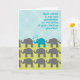 A global inspired design for the first time grandfather of a baby boy. A herd of whimsical grey Asian elephants marches across the cover of this card. One of the elephants is teal, and is singing, standing out from the herd. Colours of aqua and green, with a subtle floral patterned background completes this charming look. Perfect for the new (youngish) grandpa who has an international flair and sense of style. There are more cute elephants inside and plenty of space for your special message. Sure to become a treasured keepsake of an important family moment. Original art/verse/design are © Penny Cork.